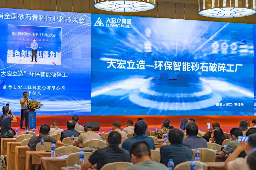 砂石骨料标准化建设主题论坛上,大宏立研发总工李佳乐作《大宏立造—环保智能砂石破碎工厂》主题报告,向与会嘉宾详细介绍了大宏立造—环保智能砂石破碎工厂特点及优势。