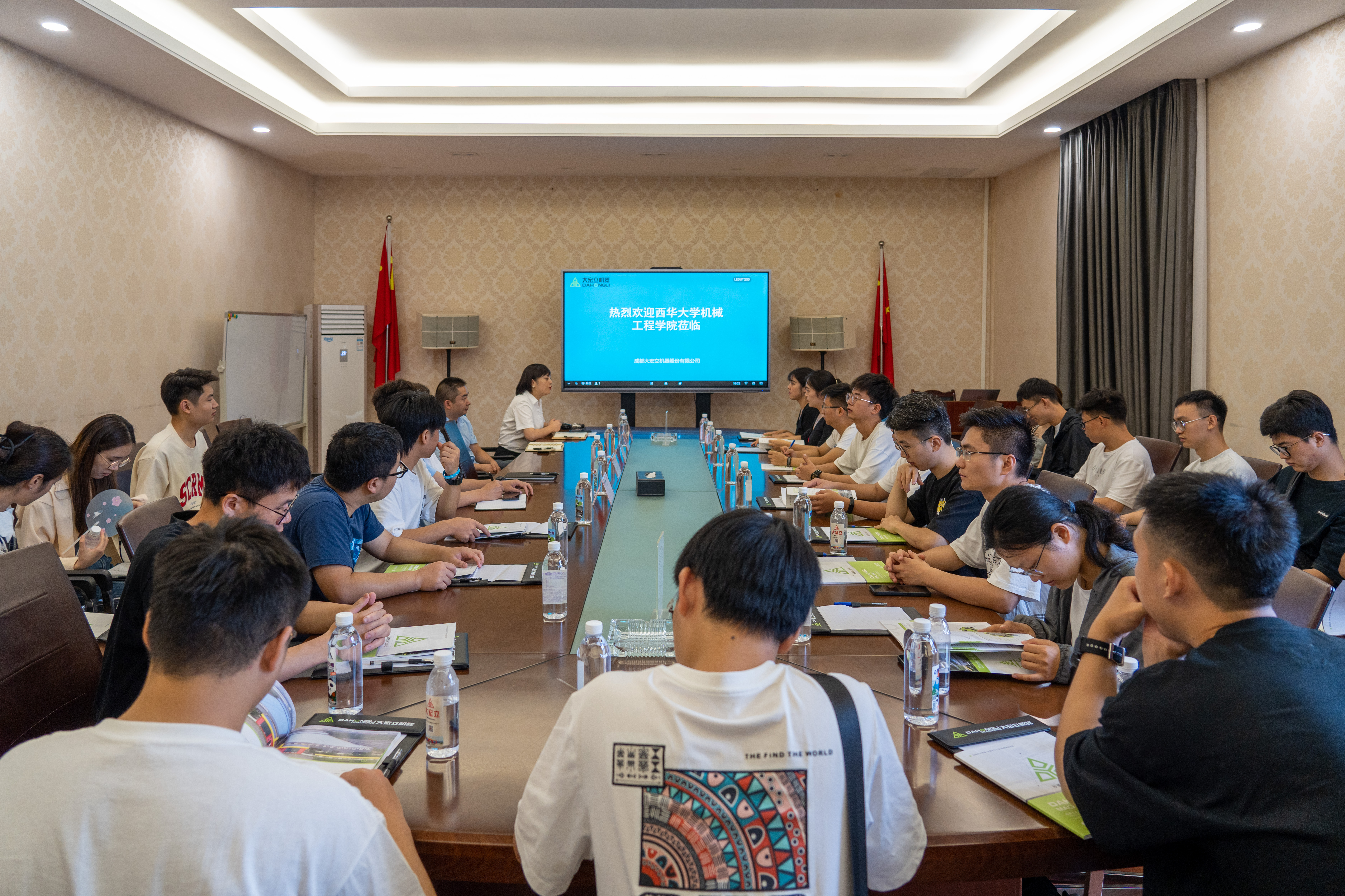 接着,师生一行在参观敬业厂区后,在大邑总部二楼会议室进行了座谈交流。
